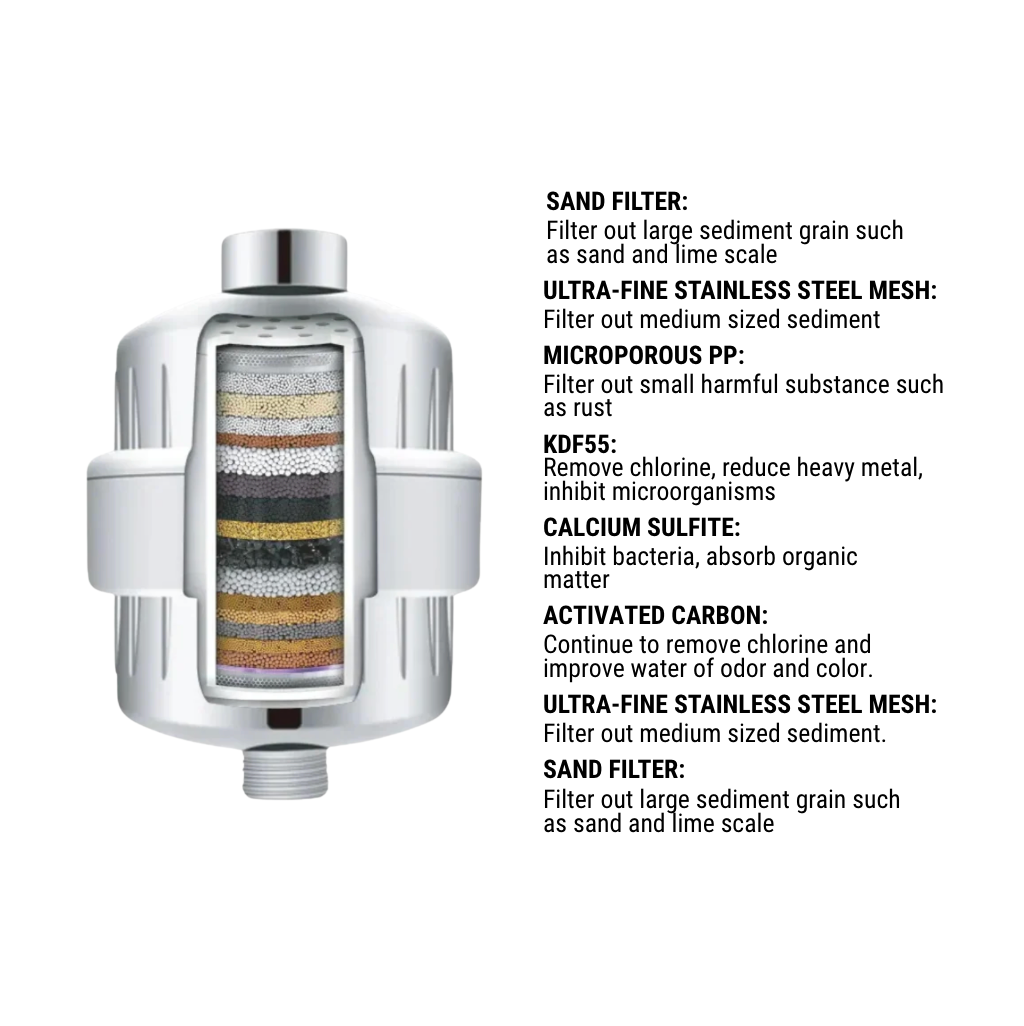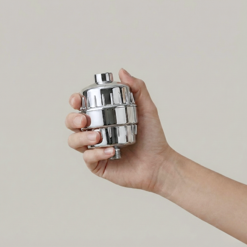 A multi-stage filtration system that gets rid of all the nasties in your household tap water. Giving you happier, healthier hair, skin & body without the hassle.