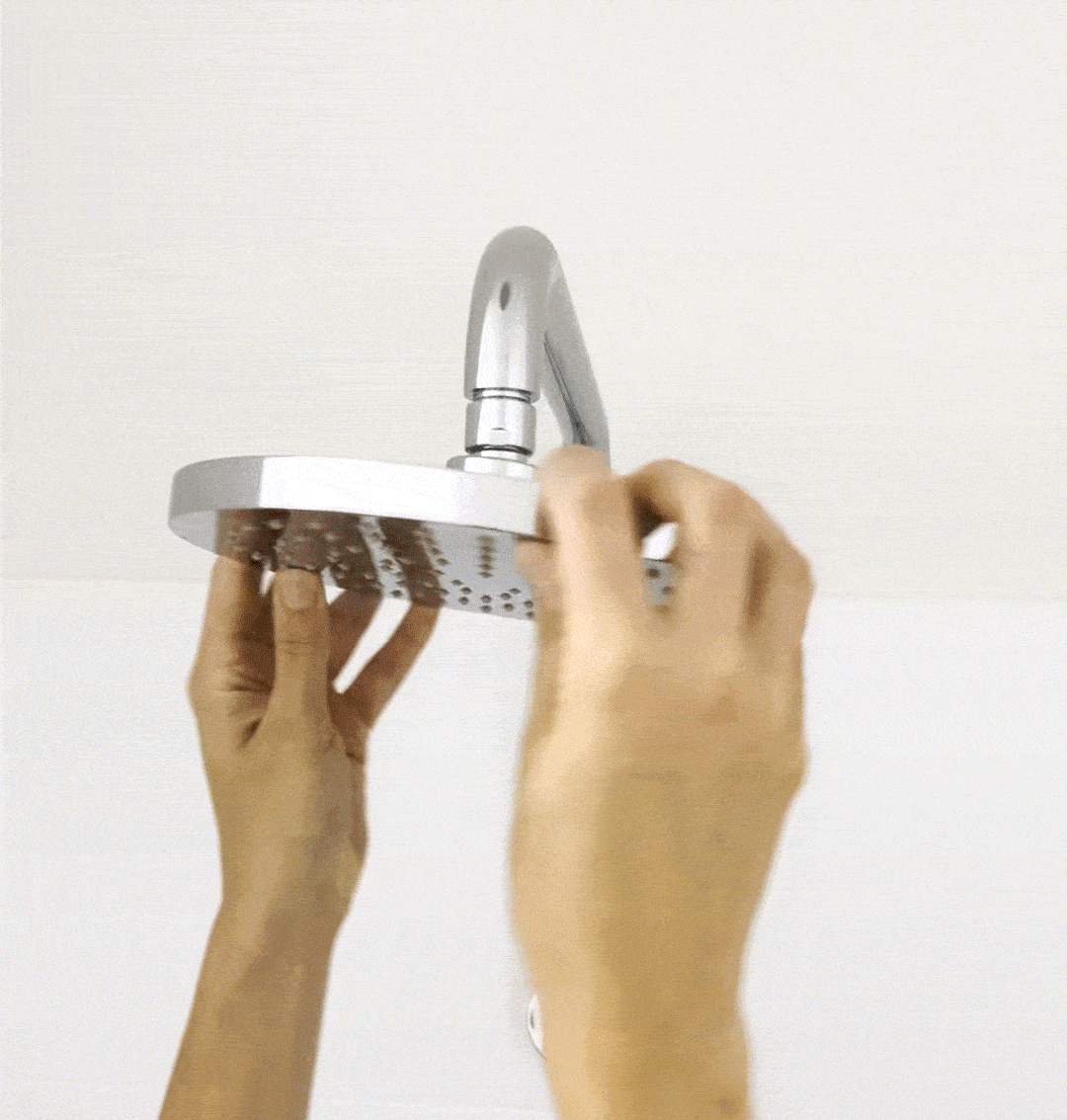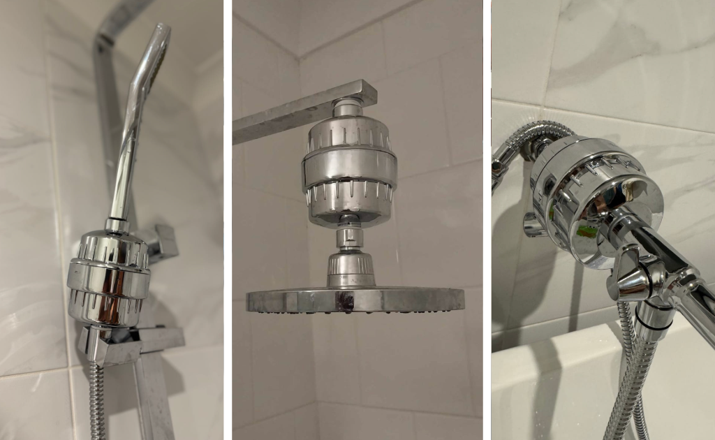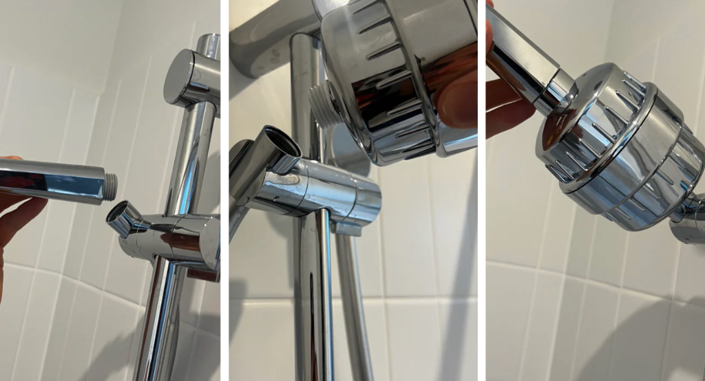 Your shower head comes off, the water filter screws on, then adjust the shower head straight back onto the filter. It's as simple as that!